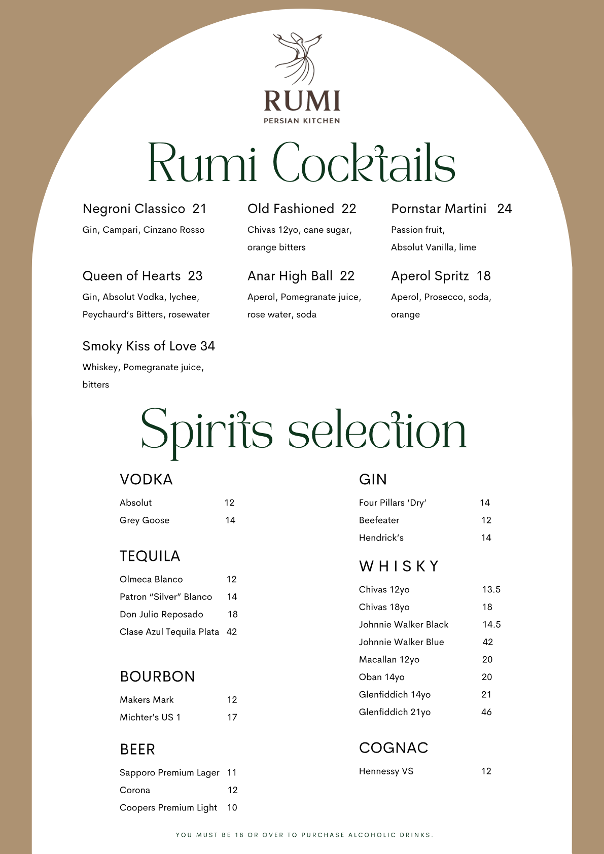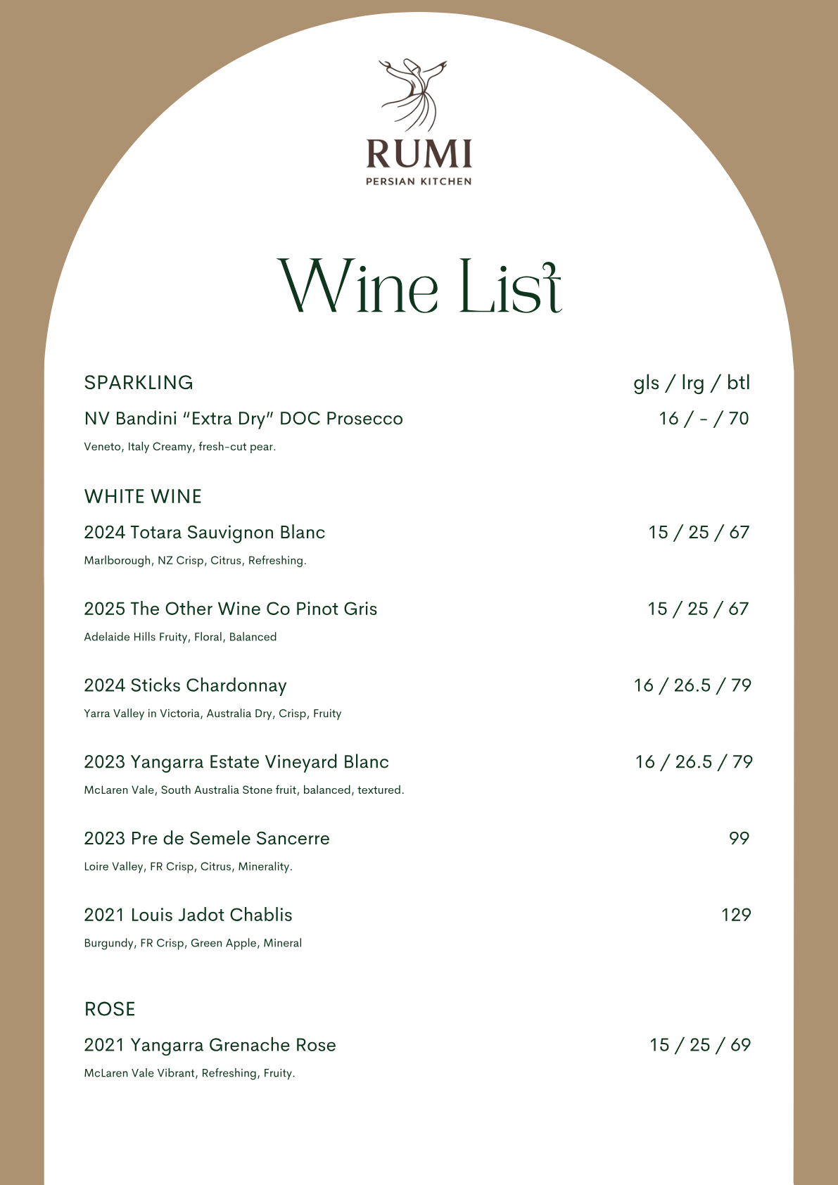 Fine wines, cocktails & Persian beverages